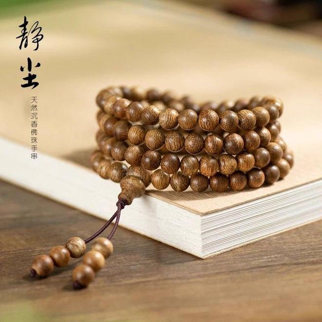 那串非金属木质手链由108颗正圆沉香小珠串联而成,每颗直径不足8mm的珠子上都留着树木生长时的气孔。不同于工业制品的完美无瑕,这些天然形成的纹理让手链在民族风穿搭中成为点睛之笔,在棉麻衬衫的袖口间散发着若有若无的木质清香。特别设计的超小孔道让串线更隐蔽,既保留了传统佛珠的形制,又符合现代审美对简洁线条的追求。当你在咖啡馆敲打笔记本时,偶尔转动珠串的沙沙声,会成为隔绝喧嚣的白噪音