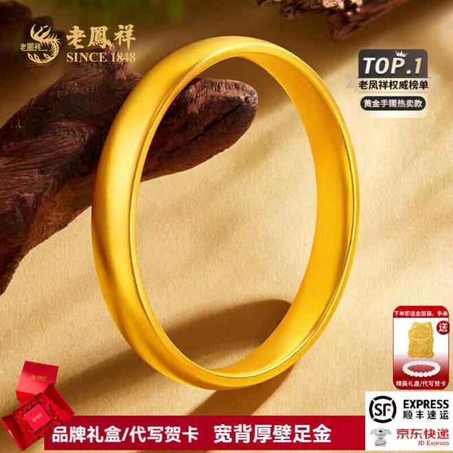 老凤祥弧形宽面黄金手镯素圈足金显粗泥鳅背古法金手镯老婆生日礼物 黄金硬金细宽古法手镯 足金约20g(定制款5-7工作日发货)