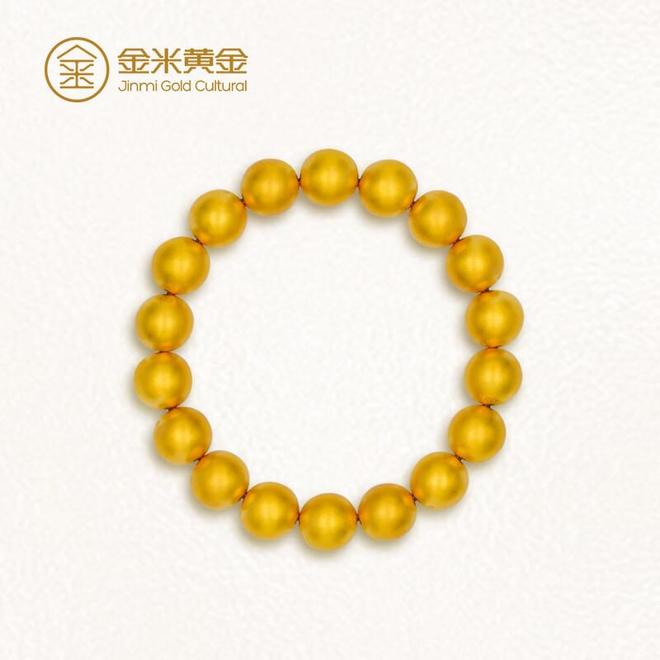 与之相配的金米八十八十八子持珠手串,选用51克足金999素珠,每颗金珠圆润饱满如朝露。不同于常见的繁复雕花,这种极简设计反而更能突显黄金本身的质感。手持时珠串随动作轻微碰撞,发出清越的金属声响,有种令人平静的韵律感。无论是日常盘玩还是作为配饰,都能在不经意间流露出低调的贵气。